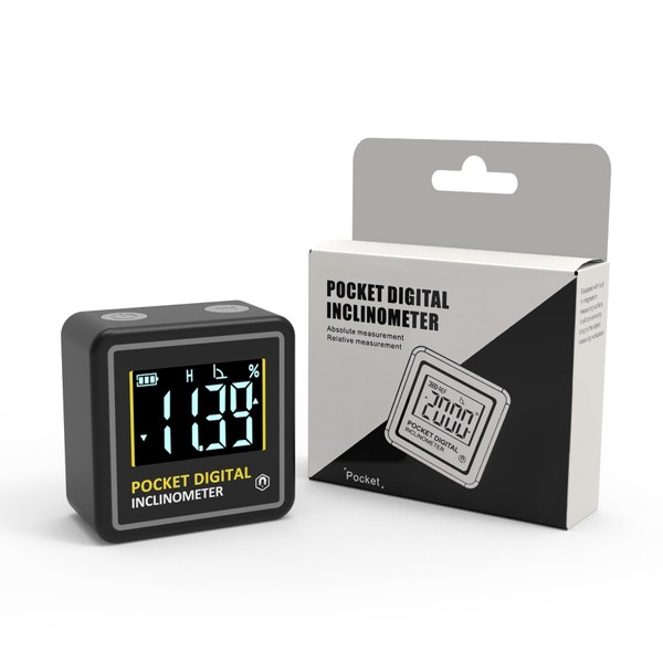 - Switchable Modes and Units for Flexibility: Switch seamlessly between absolute and relative angle measurements by the zero setting program (by short press the power button). Press the W button to hold the angle value, and press over 2 seconds to switch between angle degrees and tilt percentage.