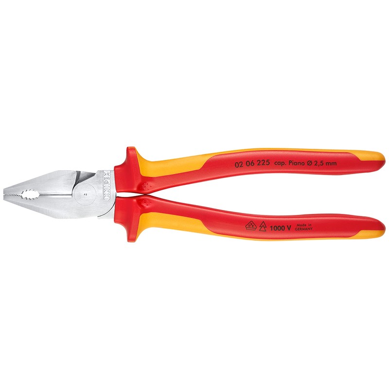 Knipex High Leverage Combination Pliers chrome-plated, insulated with multi-component grips, VDE-tested 225 mm 02 06 225