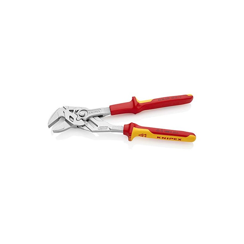 Knipex Pliers Wrench pliers and a wrench in a single tool chrome-plated, insulated with multi-component grips, VDE-tested 250 mm 86 06 250