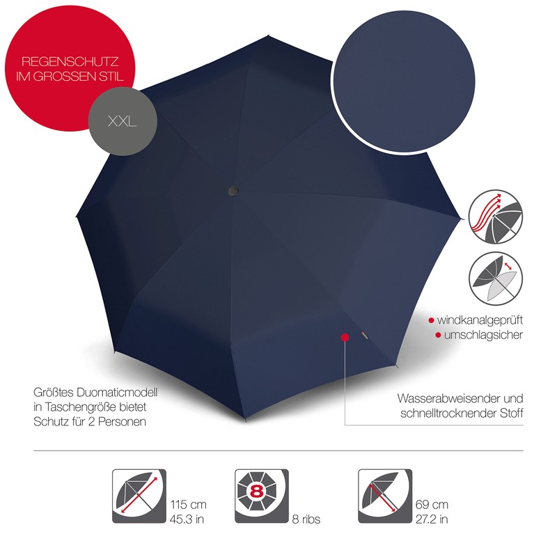 Knirps T.400 Extra Large Duomatic Folding umbrella, 36 cm, Blue (Navy)