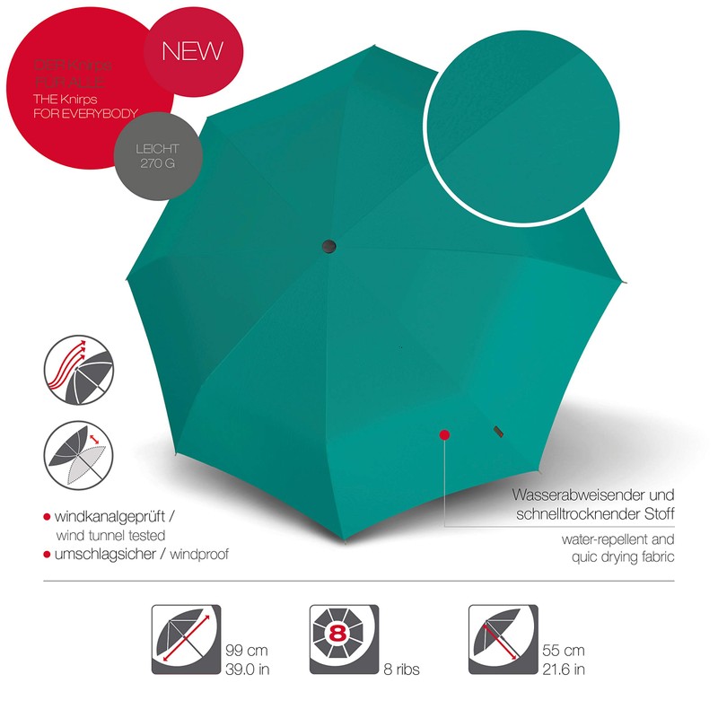 - Box contents: Knirps pocket umbrella A.050 Medium Manual, colour matching umbrella bag with loop