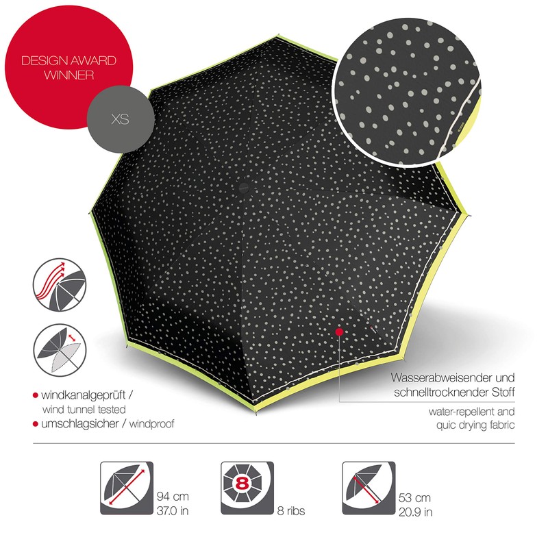 • Box contents: Knirps X1 Dots pocket umbrella & hard case with zip & practical loop.