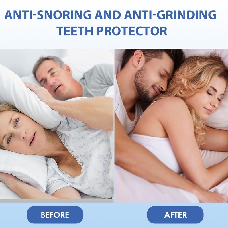 • Das enthaltene Aufbewahrungsgehäuse kann die Schnarchführung aufnehmen. Die Mundschützer bestehen aus weichem Material und können leicht in heißem Wasser an Ihren Biss angepasst werden.