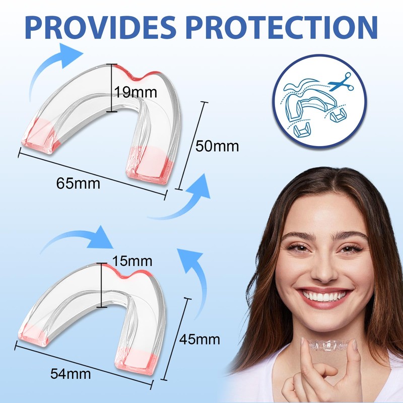 • Unsere Mundschützer reduzieren nächtliche Knirschgeräusche und eignen sich auch als Sportmundschutz. Egal, ob Sie nachts oder tagsüber aktiv sind, unsere Mundschützer sind perfekt für Sie.
