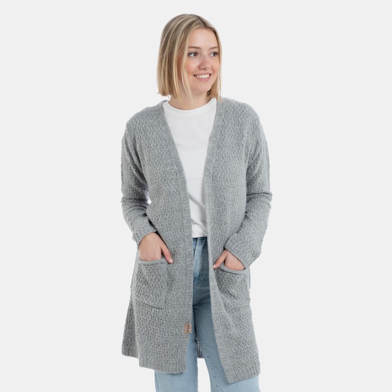 The Luna cardigan from Knit Factory in grey is a stylish cardigan for women. This mid-length cardigan is a must-have for a casual and elegant style, can be combined with a simple shirt or blouse. This cardigan can be worn all year round, both in the colder seasons and on a cool summer evening on the patio.