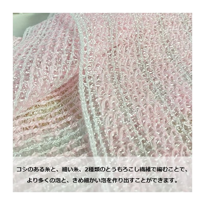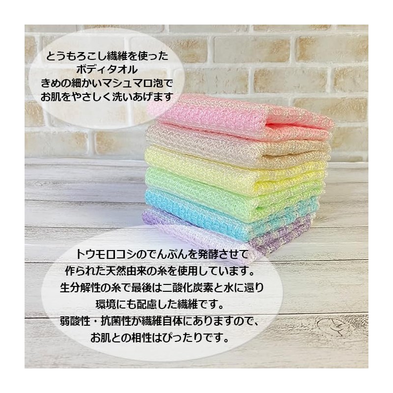 - The body towel is woven with two different corn fibers that are stiff (spun yarn) and fine thread (filament). The combination of threads of this nature creates more bubbles and finer foam
