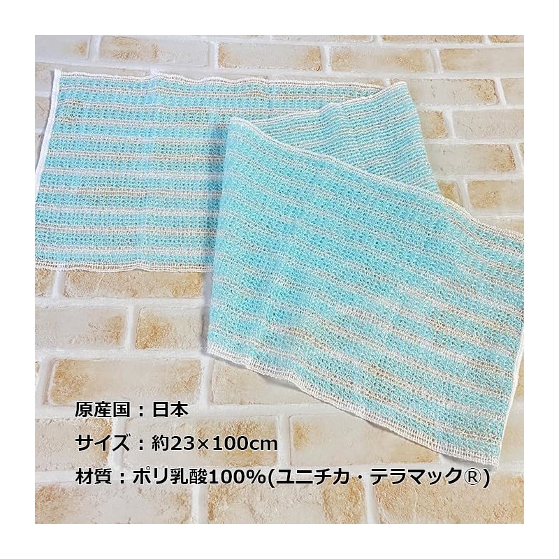 - Unitika Polylactic Fiber is a material used for this body towel that is created from a blend of corn from a lacto fermentation of corn. The fiber itself has weak acid and antibacterial properties, so it is perfect for your skin