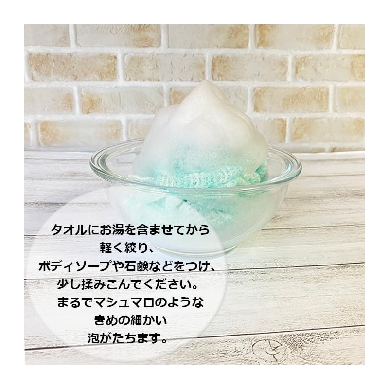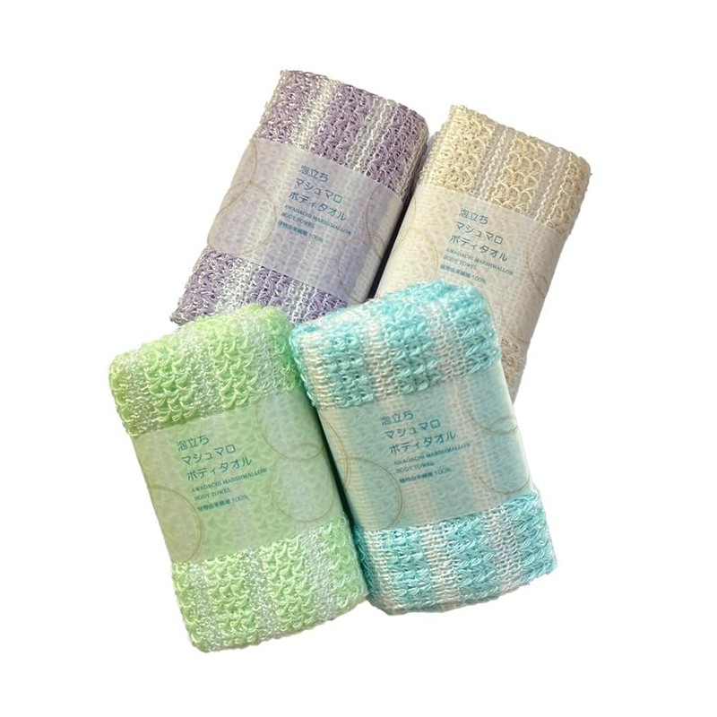 - The body towel is woven with two different corn fibers that are stiff (spun yarn) and fine thread (filament). The combination of threads of this nature creates more bubbles and finer foam