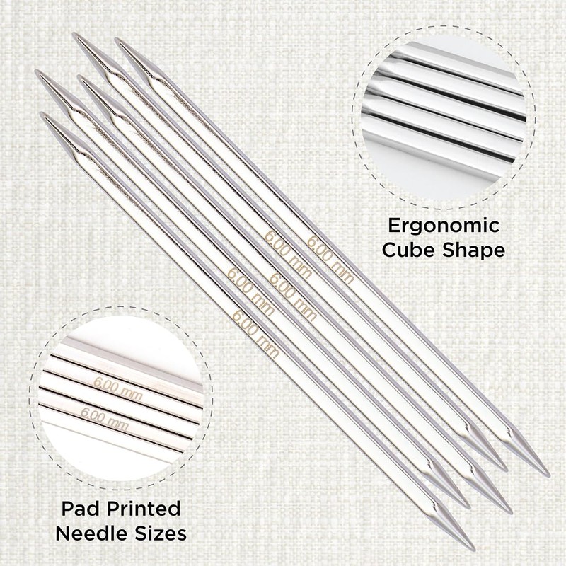 KnitPro 20 cm x 6 mm Nova Cubics Double Pointed Needles, Shiny Brass, Silber