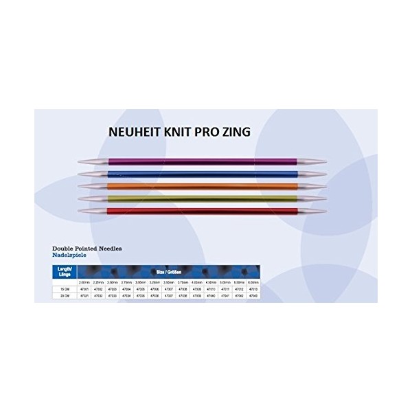 KnitPro Zing Knitting Needle Set, 15 cm, Aluminium, Various Needle Sizes