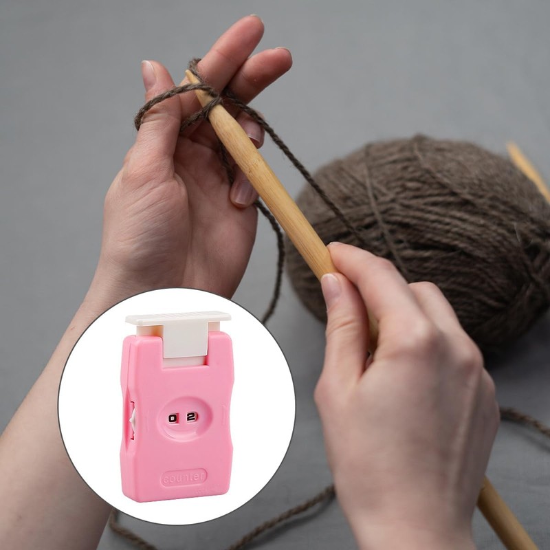 Knitting Counter, GLADFRESIT Plastic Knitting Crochet Stitch Marker Row Counter Manual Stitch Counter for Home, Travel (Pink)