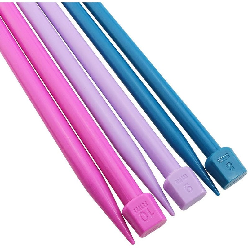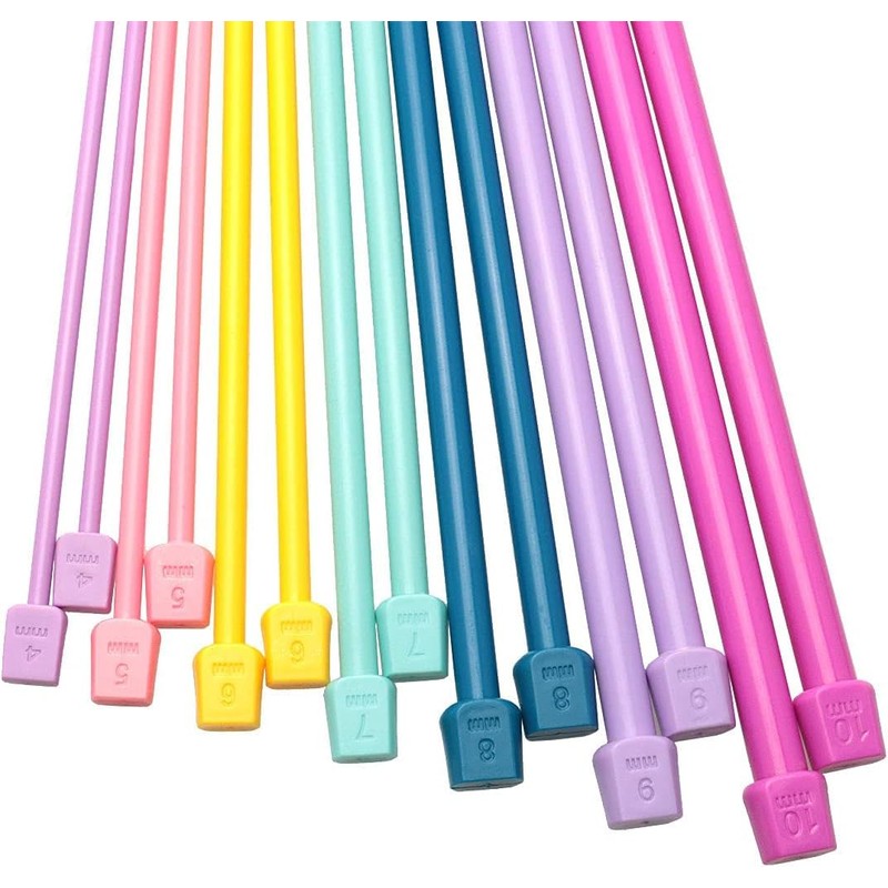 Knitting Needles Set - 7 Pairs (14PCS) 25cm Plastic Straight Pins, Multi-Colour 4-10mm for Beginners & Crafters