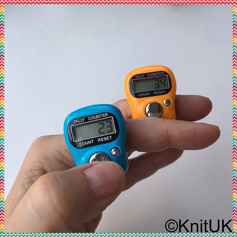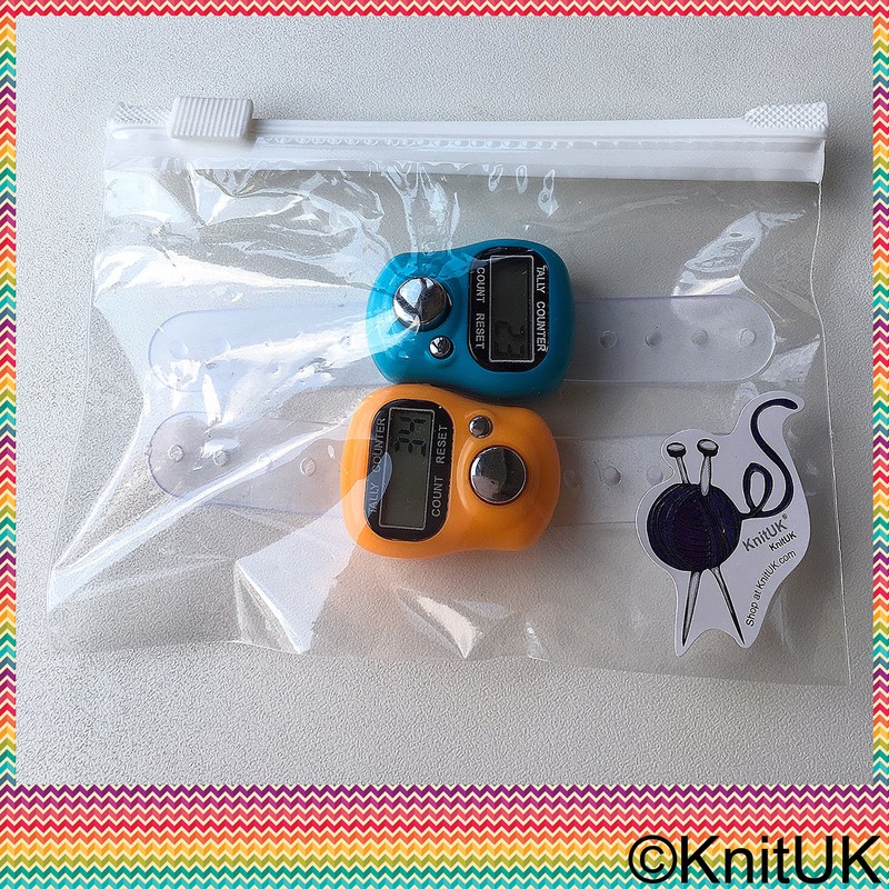 KnitUK Tally Counter - LCD (Finger-Held). Pack of 2. Orange & Turquoise Digit...