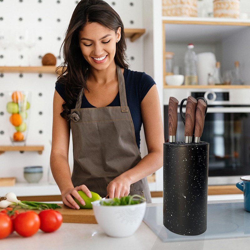• 【Space-saving & Safe & Tidy】The cylindrical knife stand can accommodate multiple knives while saving space, and the added weight layer of the knife bucket can prevent you from tipping when you are in use, making it safer and keeping your kitchen table more tidy