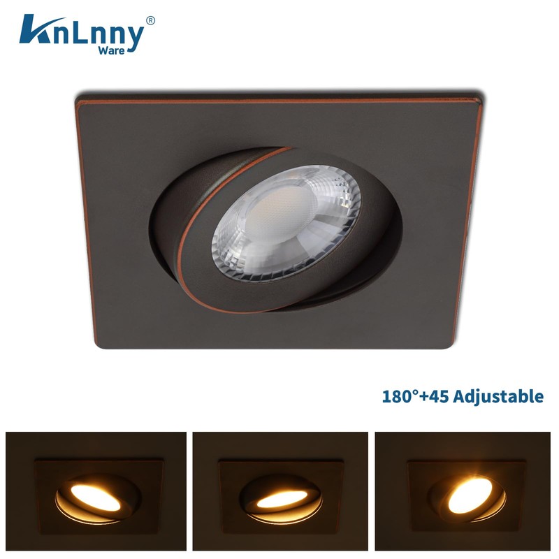 - 180°+45°Adjustable:Knlnny Ware square Bronze 4 inch gimbal led recessed light reached 180°adjustable rotation and up down 45° tilt, allowing you to easily fit the lights which wanted.