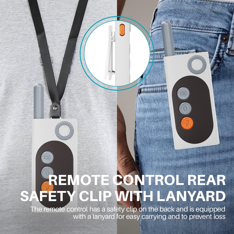- IP67 Waterproof and Replaceable Collar Straps:Built to withstand any adventure, the IP67 waterproof receiver works in rain, snow, or even swimming. Includes two durable collar straps for easy replacement and a secure fit. (Note: Remote is splash-proof but not submersible.)