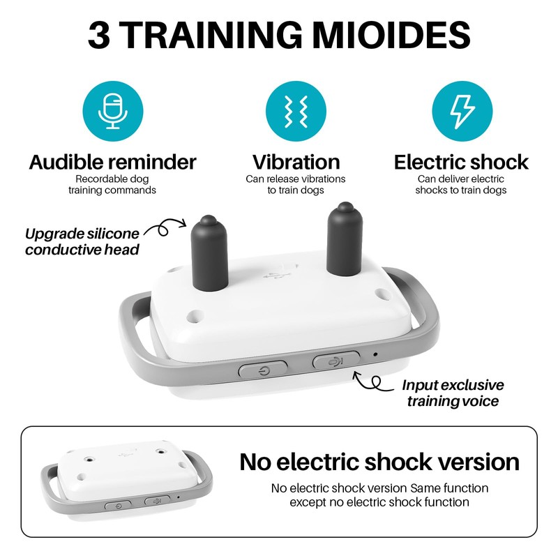 - Humane and Effective Training Modes:Train your dog safely with 3 customizable modes: beep (audio cues), vibration (tactile feedback), and safe static stimulation (adjustable levels). Designed to correct behavior gently yet effectively, ensuring your pets comfort while promoting obedience