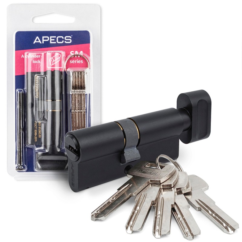 Knob Cylinder Black APECS Lock Cylinder with Knob Cylinder Lock 90 (45C/45) mm for Door Lock Front Door with 5 Keys Model SM-90(45C/45)-C-BLM