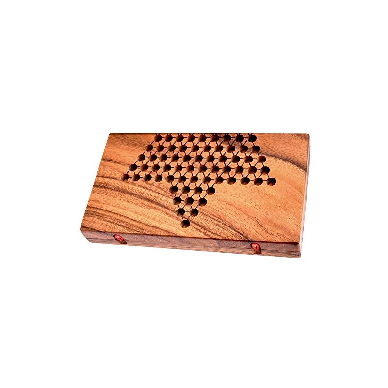Knobelholz Sternhalma board for up to 6 players in the travel version to fold. Slightly smaller than the tunier Halma, here only with 10 plugs, but good to play with two. Players strive to skip several figures and get to the other side into the star as quickly as possible. When skipping, a stone is not taken out of the game as with ladies. All skipped stones remain standing. The opponent tries to place his stones so that the opponents cannot jump as much as possible, but he himself reaches his yard by skipping sideways, backwards or forward.