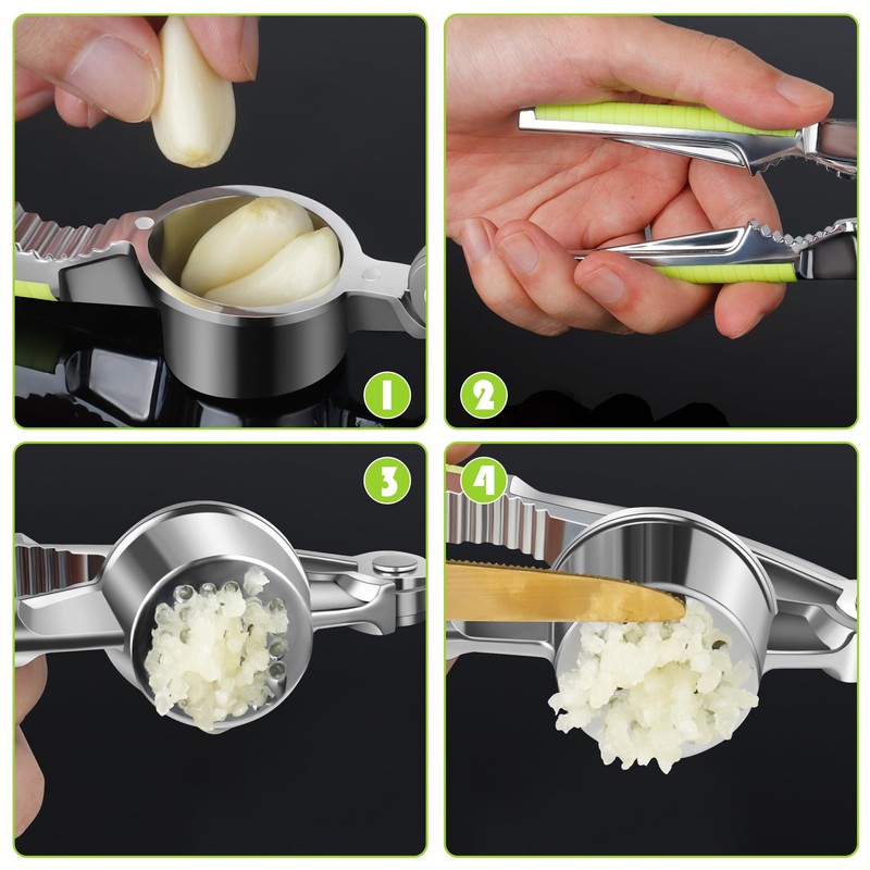 • 【Ganzen Knoblauch Verarbeiten】 Diese robuste Knoblauchpresse ermöglicht es Ihnen, ganzen, Knoblauch mühelos zu zermahlen, was zu einer gleichmäßigen und aromatischen Knoblauchmasse führt. Diese vielseitige Presse eignet sich auch hervorragend zum Zerkleinern von Ingwer, Zwiebeln und Nüssen.