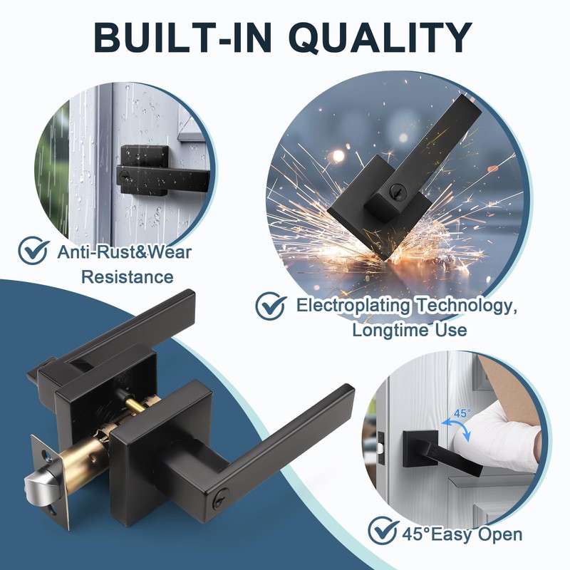 - 【CONTEMPORARY SQUARE HANDLE】: KNOBWELL Heavy Duty Square Door Handle is designed for long-time use and comfortable daily operation; the simple but modern door handle is suitable for various home design; with our upgraded material and strong internal structure, the interior door handle is not only a beautiful decoration for any doors but also offers much more safety and convenience; solid door latch ensures that the handle can be rotated up to 250,000 circles and not easily break or crush