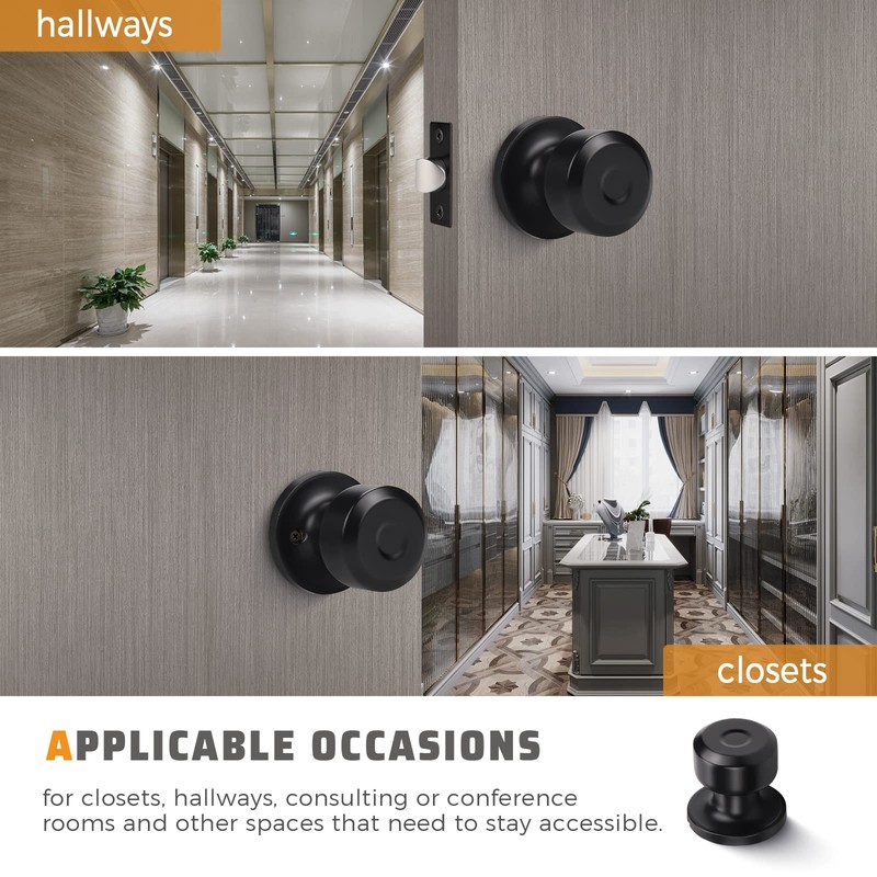 - PASSAGE FUNCTION: No lock for the doorknob. Use it for any door for spaces that need to stay accessible, but where you sometimes need peace and quiet - closets, hallways, consulting or conference rooms; Material: Metal; Finished Color: Matte Black.