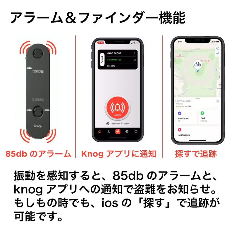 KNOG Bicycle SCOUT Scout Scout App Search App Detects Vibration and Sounds Alarm, Black, H4.1 x W1.0 x L0.3 inches (106 x 26 x 8 mm)