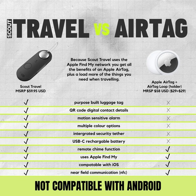 • Scout Travel Tag for IOS Devices - This product only works on IOS. It does not work on Android devices.