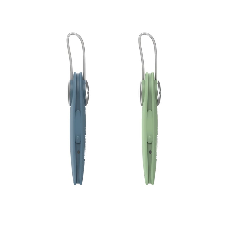 Knog Scout iOS Twin Pack Smart Tag, Tracker & 85dB Alarm – Rechargeable Luggage Tag Compatible with iOS App & Apple Find My, Digital Contact Info, Remote Chime, Water-Resistant, Blue/Green