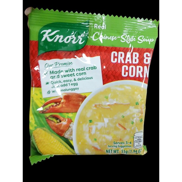 Enjoy the delectable flavors of the sea with KNORR Crab & Corn Soup. Each pack contains a savory blend of crab and corn, providing a satisfying meal that's perfect for any craving. With four packs included, you can look forward to a total of 8-10 servings, depending on the portion size you prefer, making it an ideal choice for both family dinners and solo snacks.