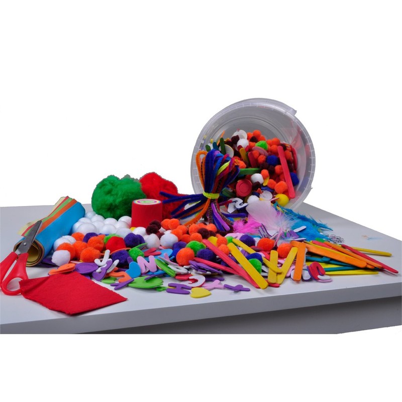 • The easily transportable craft bucket will conjure the little crafters of glowing eyes in the face. Includes: 1 pair of scissors, 20 pipe cleaners, approx. 100 foam rubber letters.