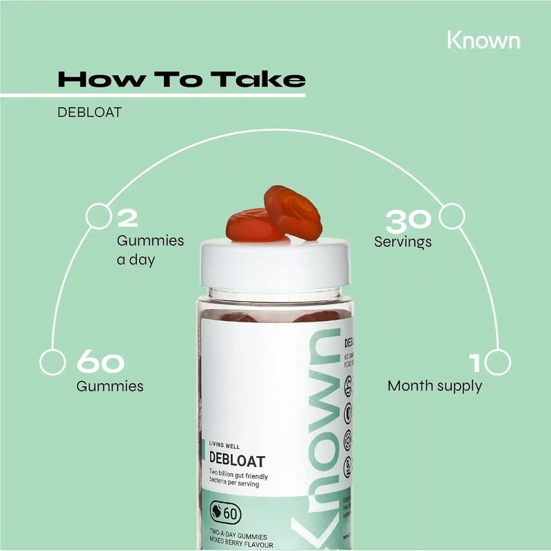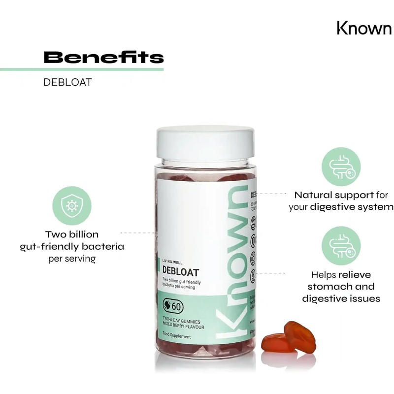 Known Delicious Debloat Gut Support Gummies - 2 Billion CFU Bacillus Coagulans & Vitamin C - Natural Mixed Berry Flavour - 60 Gummies, 1 Month Supply
