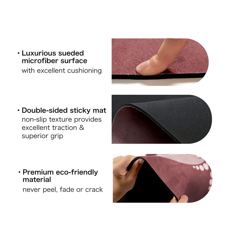 - Excellent Cushioning: With 3.5mm thickness and faux suede material, protecting the safety of all levels of yoga enthusiasts. Allow you to keep your balance during any exercise style. Moisture resistant makes the mat to be easily washed with soap and water. Clean spot with damp cloth, cold water and mild detergent, and then dry flat. Please don't expose directly to the sun.