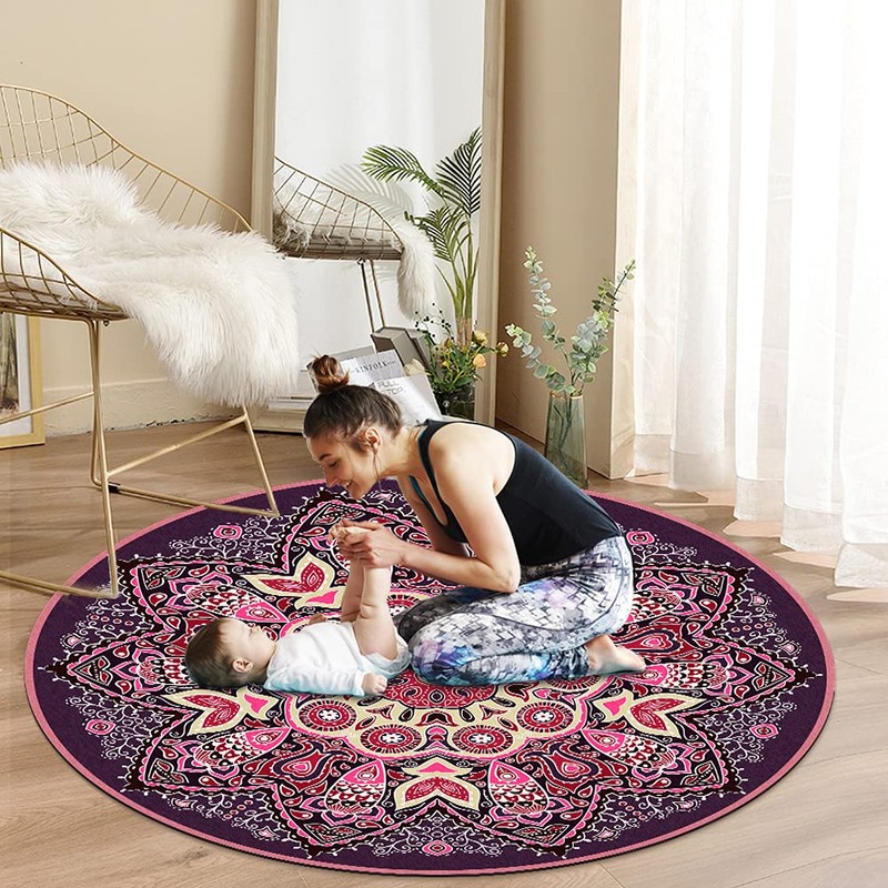 - Extra Size: diameter 4.6'(140cm), our extra large round mat provide ultra comfort and support, you can enjoy your meditation or yoga freely and no worry about the limited of the traditional mat size. 3.5mm thick, it's perfect support your ankles in the practice, relieves achy joints and sore ligaments during your exercise.