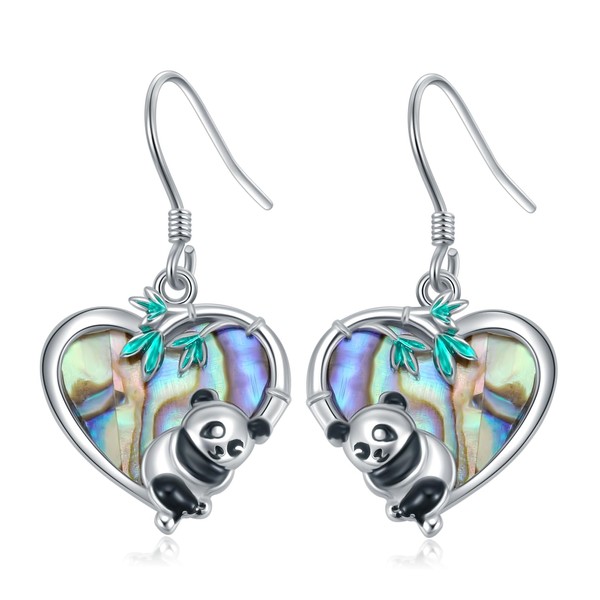 KNTTZZI Panda Sterling Silver Dangle Earrings - Abalone Shell Panda Drop Earrings for Women - Mother's Day & Birthday Gifts