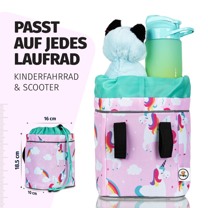 Knuffig Children's Handlebar Bag - Front Bicycle Basket, Fits Any Balance Bike, Scooter & Bicycle - Colourful Bag Bags for Little Explorers