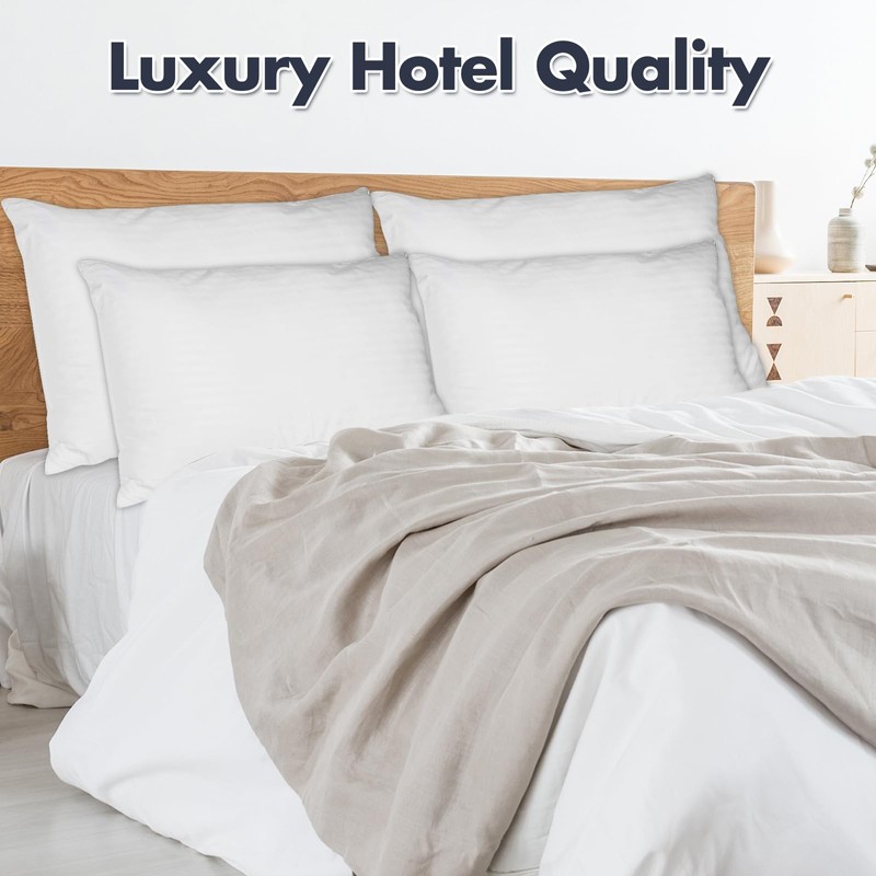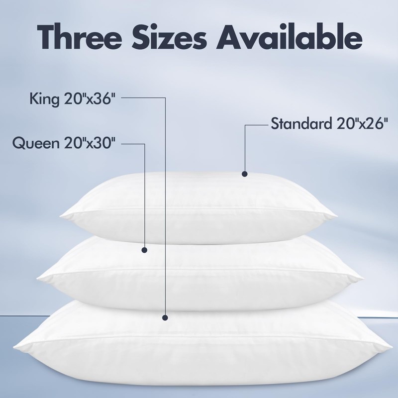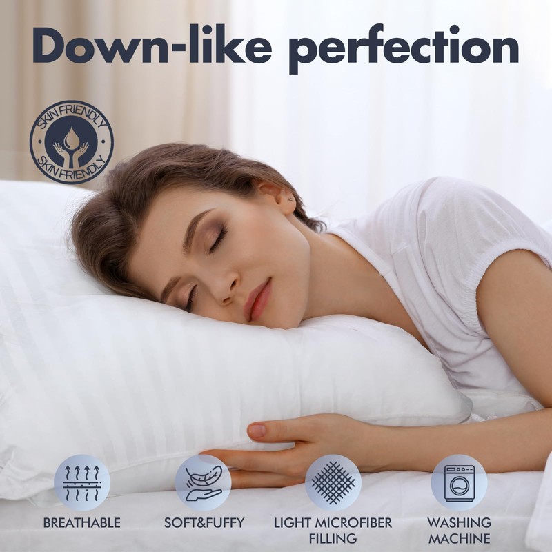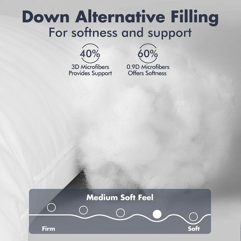 - Plush Comfort: Our pillows are filled with down-alternative material (similar feel like down), that provides a soft, supportive, and fluffy feel, suitable for back, stomach, or side sleepers.