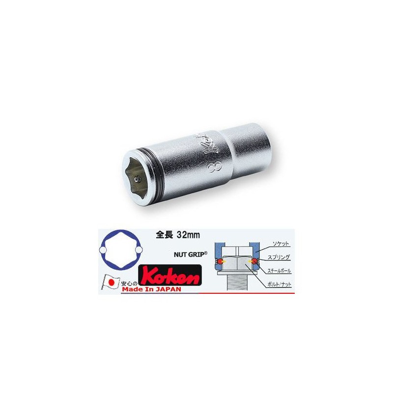 Ko-Ken 2350X-10 1/4 Sq. Dr. Semi-Deep NUT Grip Socket 10mm