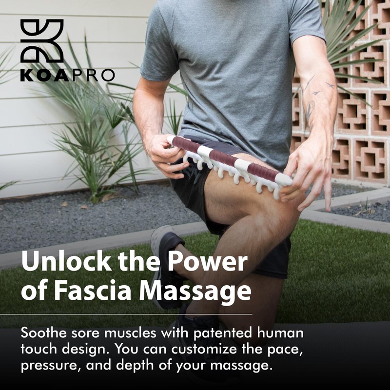- Faster Myofascial Release: Our patented KOAPRO full-body fascia massage tool is designed for daily deep tissue muscle recovery or post-workout. Boost oxygen and blood flow to improve fascia health, flexibility and mobility, whether for daily use or pre-workout preparation. Unlike foam rollers or massage balls that can't penetrate deep fascia layers, or pulsating guns that target temporary results, KOAPRO delivers quicker, long-lasting relief. Available in black, grey, blue, and now red.