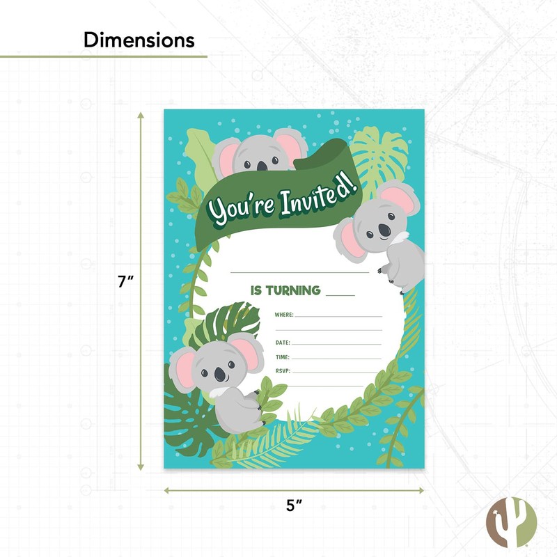 Koala Design 2 Happy Birthday Invitations Invite Cards (25 Count) With Envelopes Boys Girls Kids Party (25ct)