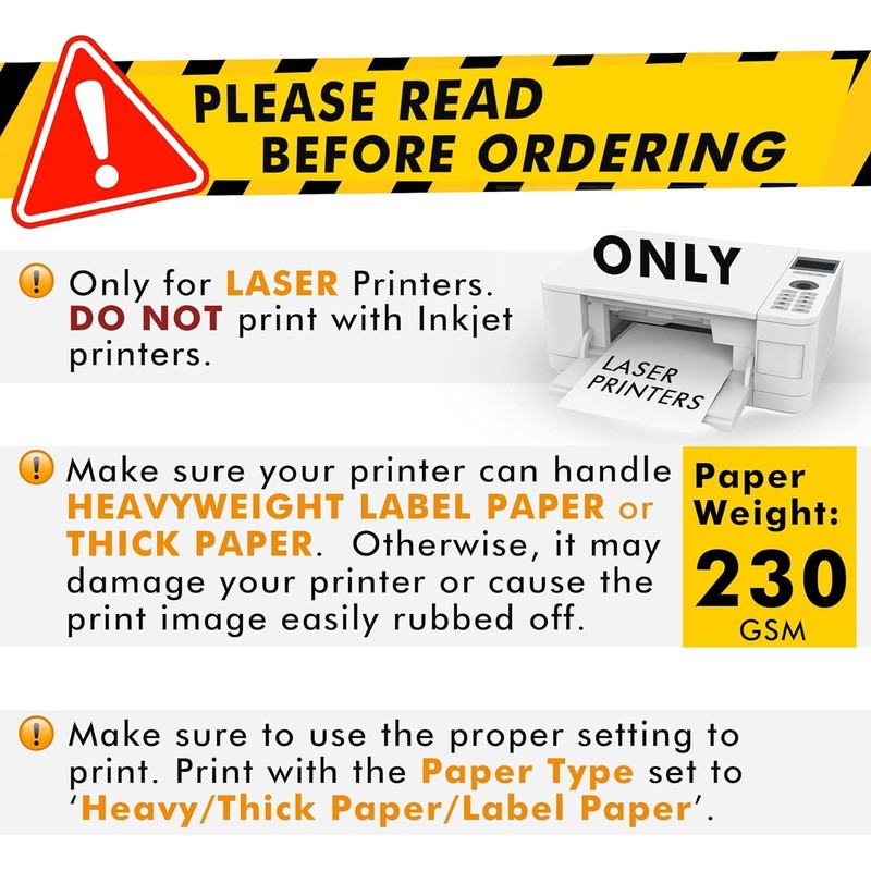 - NOTE - Make sure your Laser printer can handle thick label paper before purchasing. Otherwise, you may have the toner smudging or jamming issues.