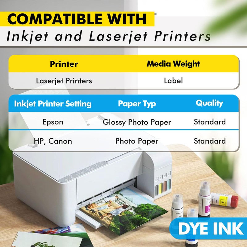 - Work with inkjet printers and DYE Ink, Fast Dry. NOTE: please confirm your printer can handle 69 lb (260GSM) cardstock paper before purchasing