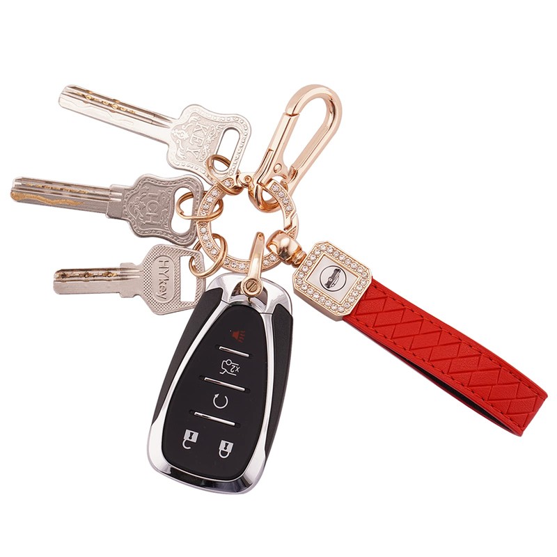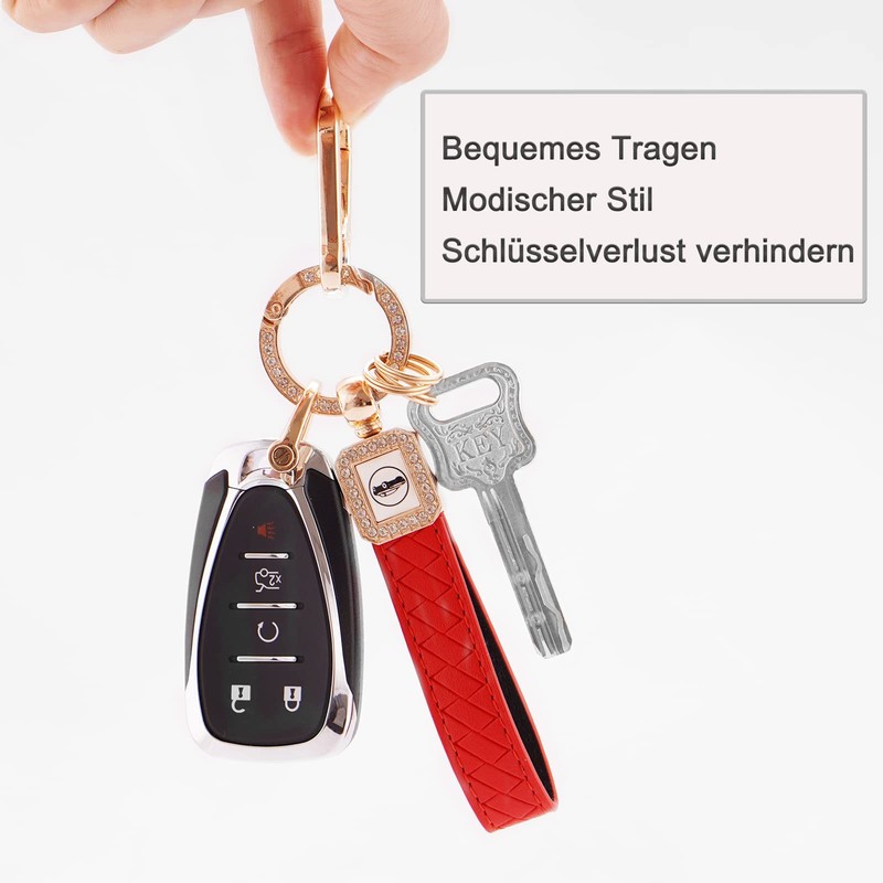 Koaudb Universal Bling Leather Car Keychain 360 Degree Rotatable with Anti-lost D-ring Key Rings Key Fob Key Chain Holder Accessories for Men and Women (Red)