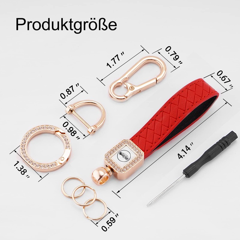 - 【Package includes】1 x Genuine Leather Keychain, 1 x round spring clip buckle, 1 x anti-lost spring clip buckle, 1 x D-ring, 3 x Keyrings, 1 x Screwdriver. It is suitable for car keys, work keys, family keys, pocket accessories and pendant.