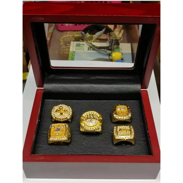 All 5 Championship ring replicas with a really nice wooden display case. 2000 2001 2002 2009 2010