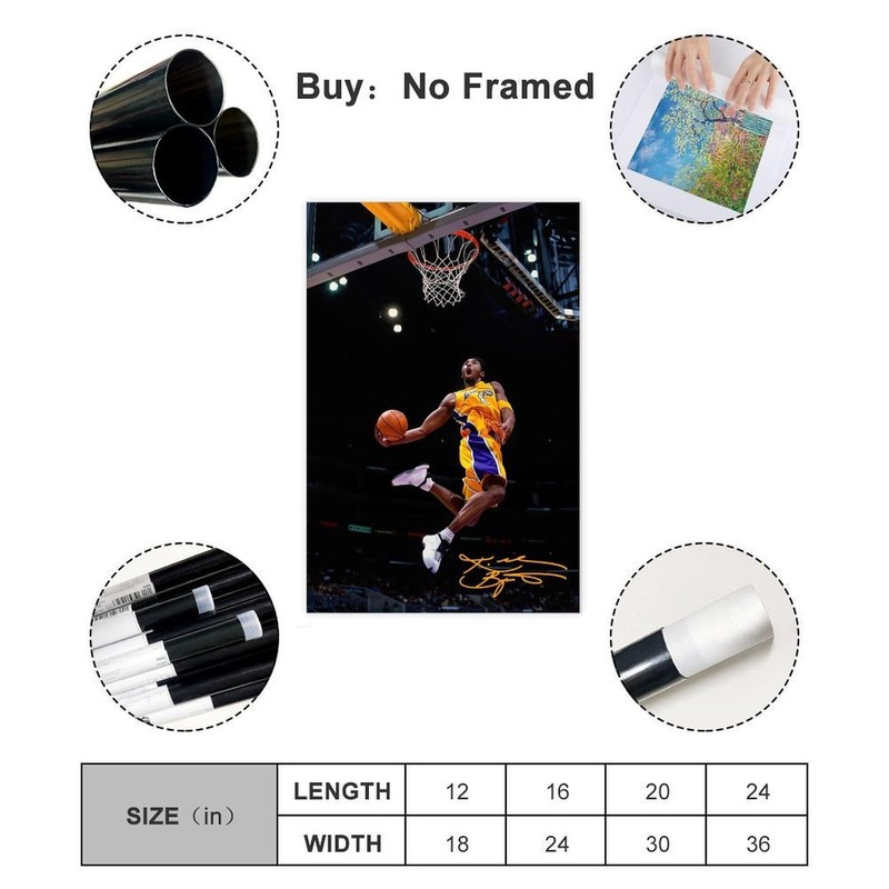 Kobe Poster Bryant Wall Art for Room Aesthetics Boy Bedroom Canvas Unframed Poster Living Room (18"x12" Unframed)