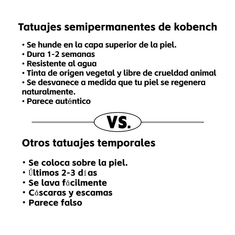 - 【Semi-Permanent Ink for Realistic Results】 – KOBENCH tattoos use a unique semi-permanent ink technology that sets them apart from traditional temporary tattoos. Instead of sitting on top of your skin, KOBENCH tattoos blend with your skin's surface for a more natural and long-lasting look.
