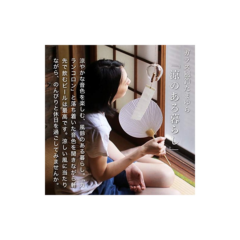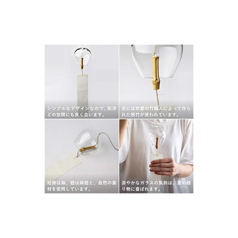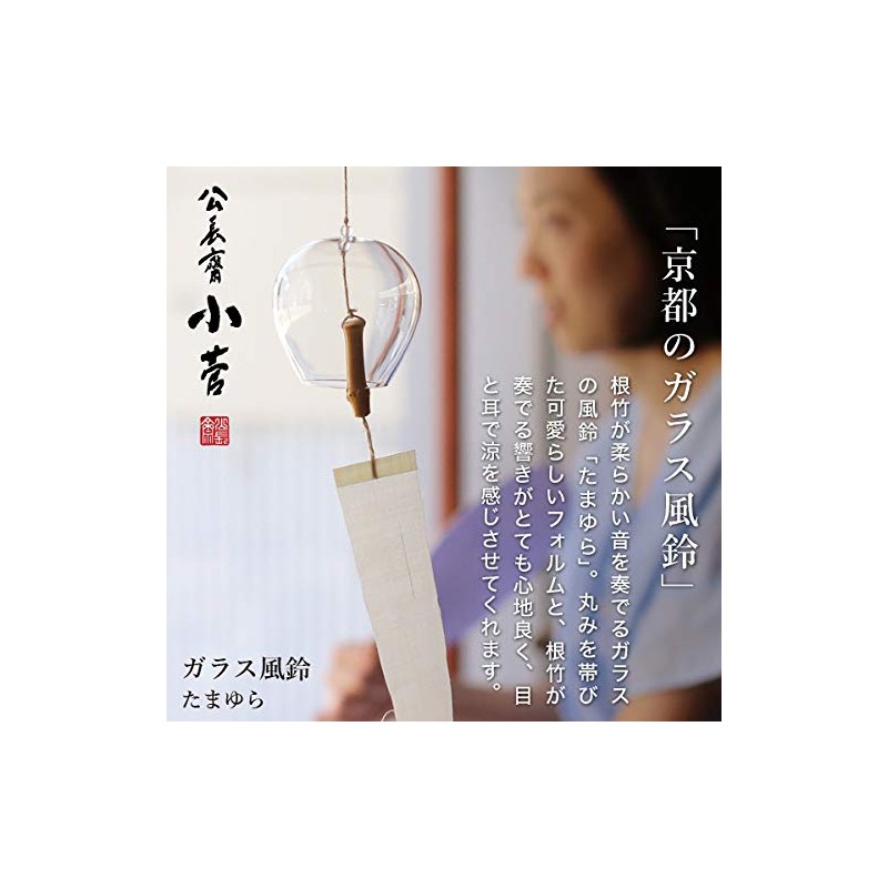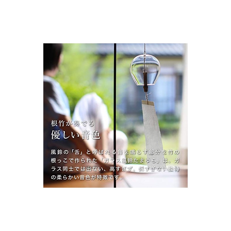 The "Tamayura" glass chime is made from bamboo roots where the sound is called "tongue" and features a unique soft tone that is not too high or too low.