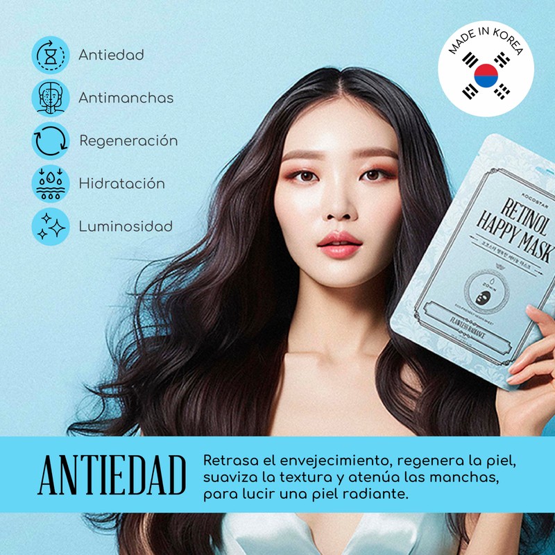 - ✨ 4er-Packung: Dieses Set enthält 4 koreanische Gesichtsmasken: 2 Retinol Happy Mask und 2 Polyglutamic Acid Happy Mask.