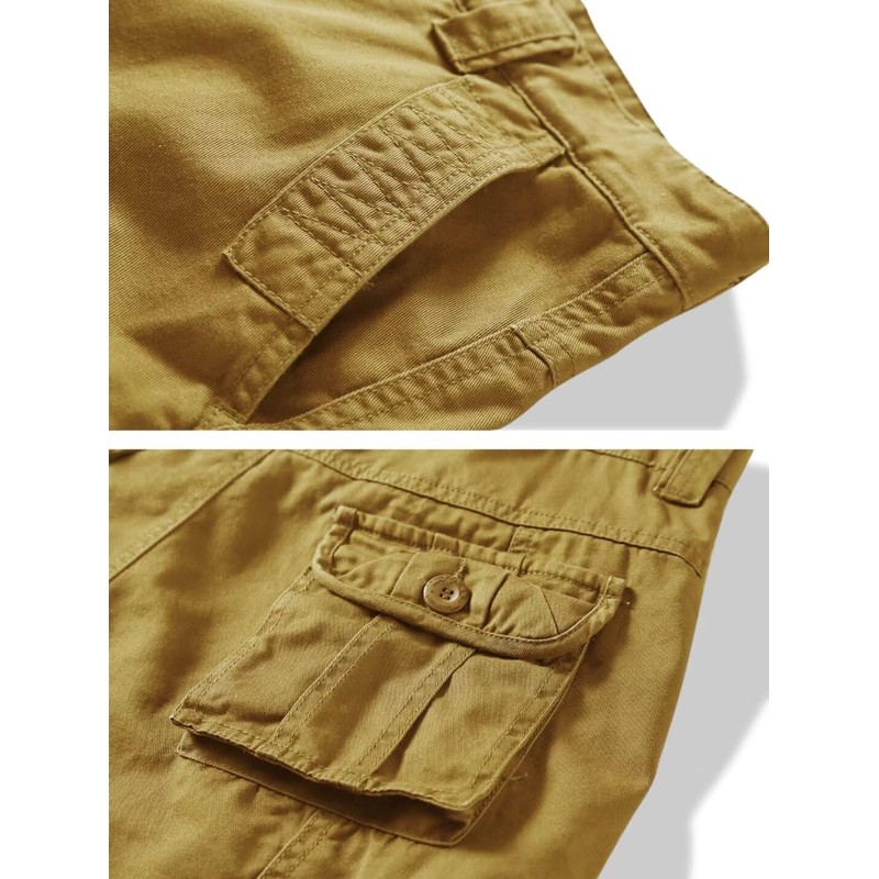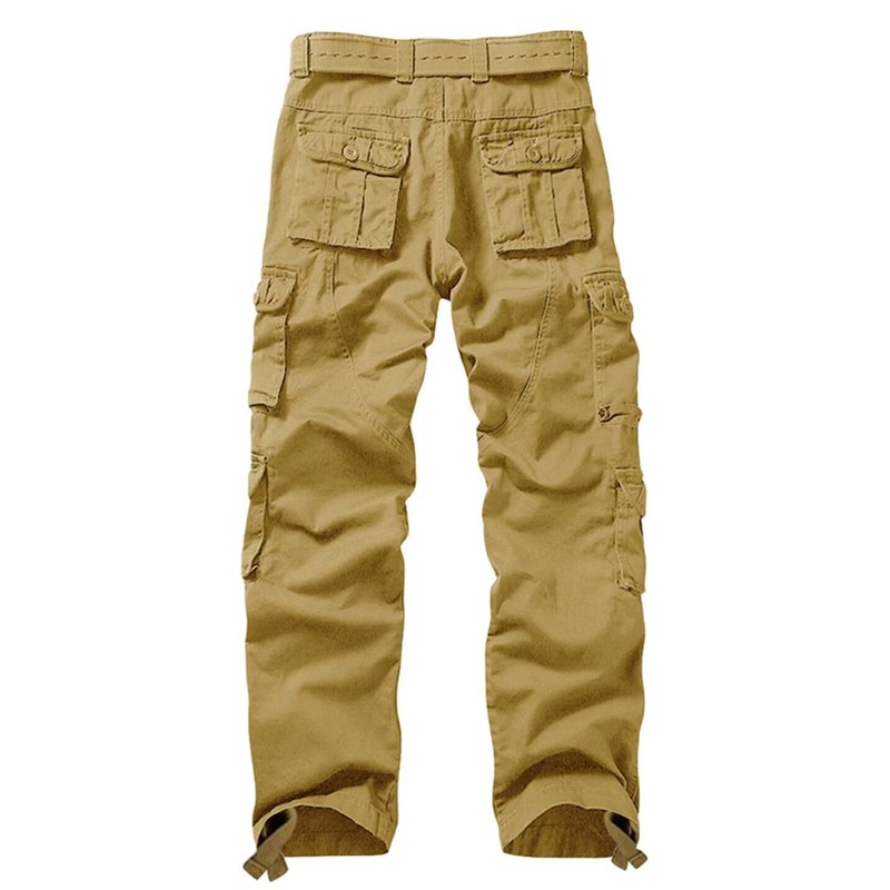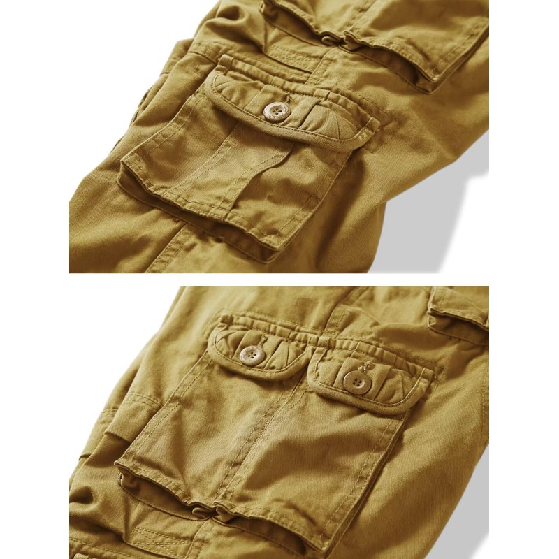 KOCTHOMY Casual Cargo Pants for Men Tactical Baggy Cotton Work Pants with Multi Pockets No Belt K18 Khaki 36